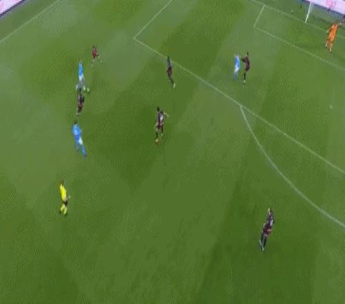 第39分钟,斯皮纳佐拉左路推进分球,霍伊伦禁区内转身低平球传中,迈尼昂扑救脱手送礼,内雷斯轻松推射空门得手,那不勒斯打破僵局,1-0!