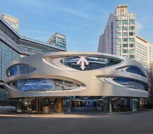 12月16日晚,北京华贸中心,迪桑特做了一件不太一样的事。一场冬季大秀,没有选择惯常的雪山或古迹,而是放在了品牌自己刚刚打造的北京华贸全球旗舰店——“未来之城”里。这既是这